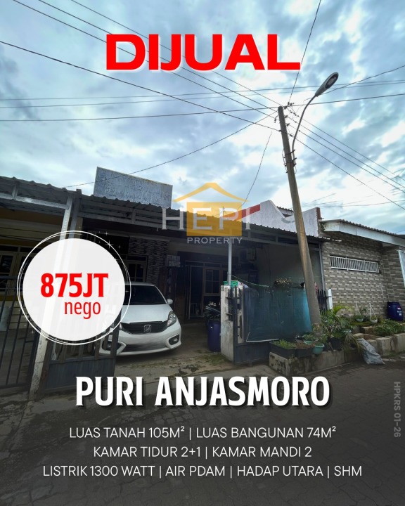 Dijual rumah di Puri Anjasmoro, Semarang. Hunian modern dengan 2 kamar tidur dan 1 kamar mandi. LT 105m², LB 74m². Harga terjangkau 875 Juta. Lokasi strategis.