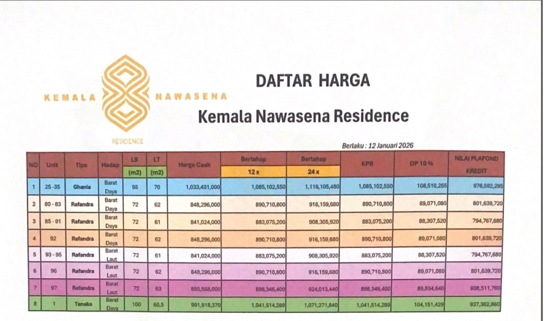 2. Terdapat biaya administrasi, appraisal, asuransi jiwa, asuransi kebakaran, notaris dan biaya lain dalam pengajuan KPR. Rincian biaya akan didapatkan setelah keputusan kredit diterima oleh calon debitur.