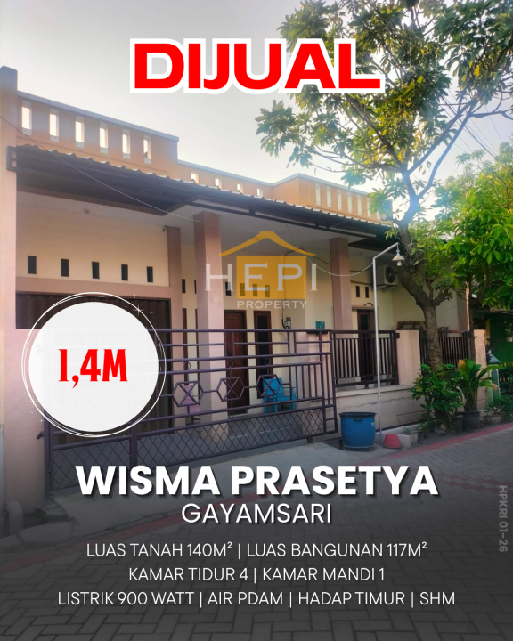 Rumah minimalis di kawasan Gayamsari, Semarang. Luas tanah 140m² dan luas bangunan 117m², dilengkapi 4 KT & 1 KM. Harga mulai 1,4 Miliar. Proses pembelian mudah.