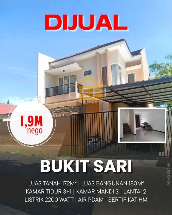 Segera miliki rumah idaman di Bukit Sari, Semarang. Luas tanah 172m² dengan bangunan 180m², terdiri dari 3 KT & 3 KM. Harga terbaik di kelasnya: 1,9 Miliar. Lingkungan nyaman.