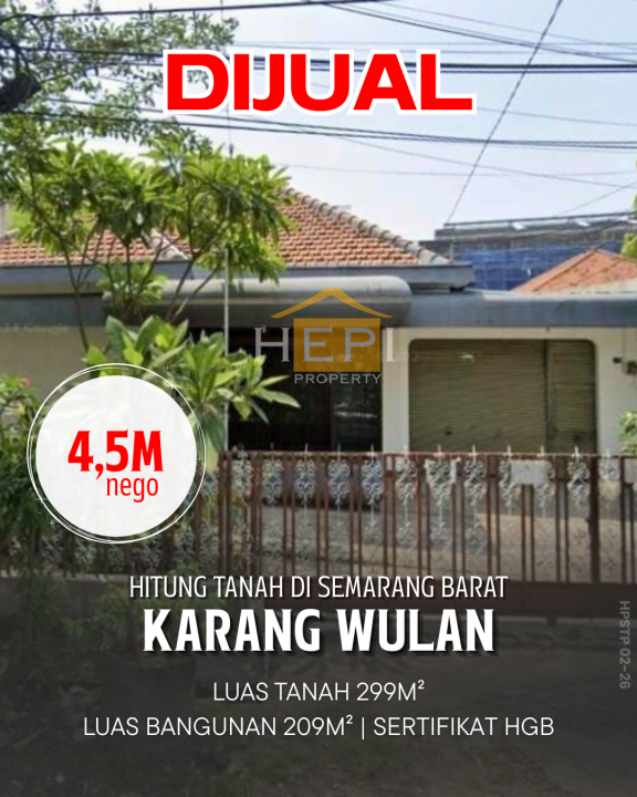 Dijual Rumah Hitung Tanah di Karangwulan Semarang Barat