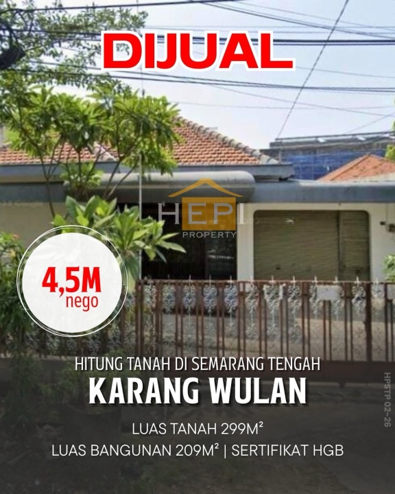 Dijual Rumah Hitung Tanah di Karangwulan Semarang Tengah