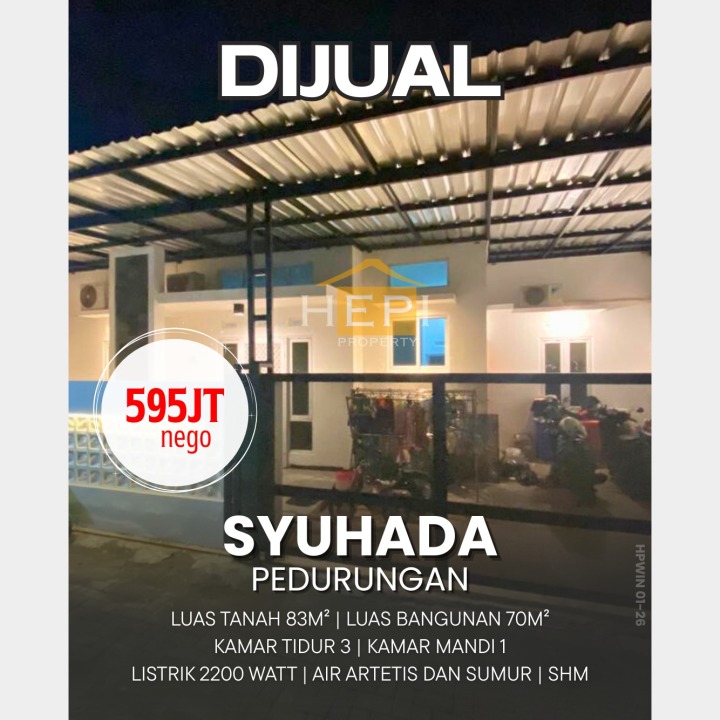 Promo terbatas rumah idaman di Pedurungan, Semarang. Luas tanah 83m² dengan bangunan 70m², terdiri dari 3 KT & 1 KM. Harga terbaik di kelasnya: 595 Juta. Lingkungan nyaman.