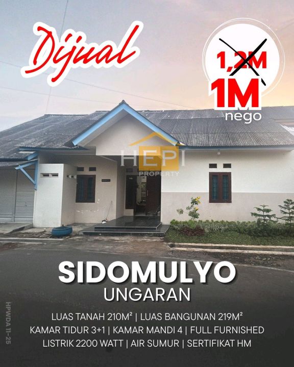 Segera miliki rumah idaman di Ungaran, Semarang. Luas tanah 210m² dengan bangunan 219m², terdiri dari 3 KT & 4 KM. Harga terbaik di kelasnya: 1 Miliar. Lingkungan nyaman.