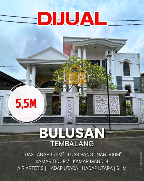 Hunian prestisius di Tembalang, Semarang. Memiliki luas tanah 575m² dengan bangunan 500m², terdiri dari 7 kamar tidur & 4 kamar mandi. Harga eksklusif: 5,5 Miliar. Dekat fasilitas mewah.