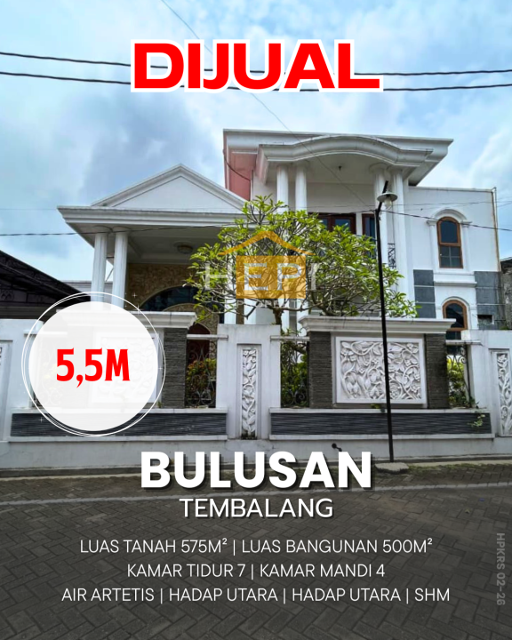 Penawaran istimewa memiliki rumah premium di Tembalang, Semarang. Luas tanah 575m², bangunan 500m², 7 KT & 4 KM. Harga terbaik di kelasnya: 5,5 Miliar. Lokasi strategis.