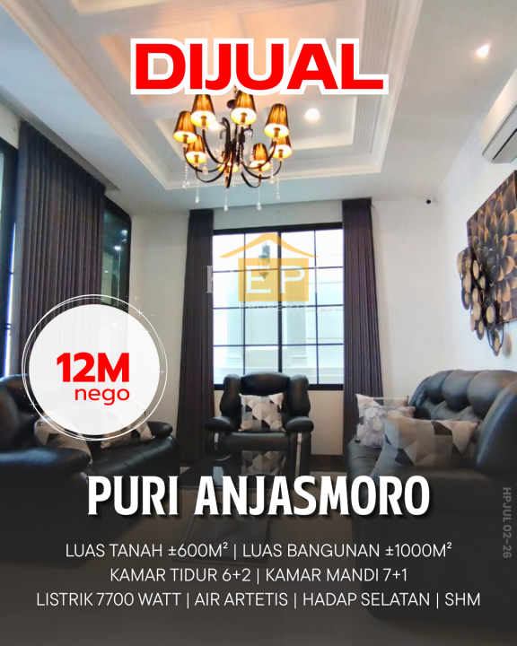 Penawaran istimewa memiliki rumah premium di Puri Anjasmoro, Semarang. Luas tanah 600m², bangunan 1000m², 8 KT & 8 KM. Harga terbaik di kelasnya: 12 Miliar. Lokasi strategis.