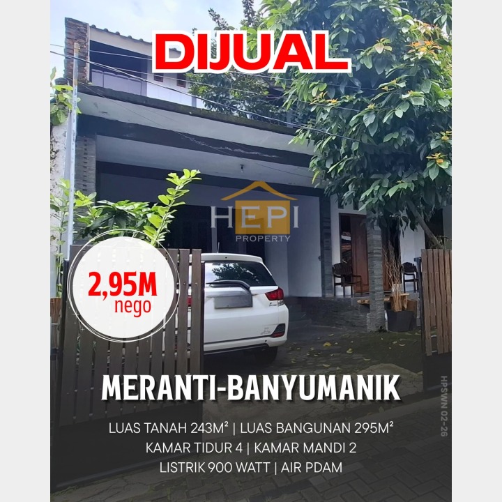 Penawaran istimewa memiliki rumah premium di Banyumanik, Semarang. Luas tanah 243m², bangunan 295m², 4 KT & 2 KM. Harga terbaik di kelasnya: 2,95 Miliar. Lokasi strategis.