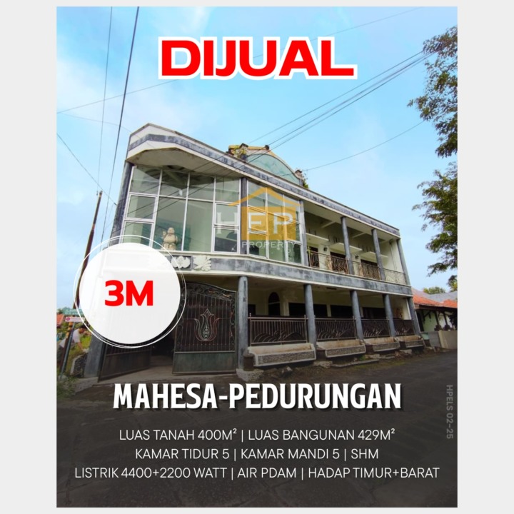 Kesempatan emas memiliki rumah premium di Pedurungan, Semarang. Luas tanah 400m², bangunan 429m², 5 KT & 5 KM. Harga terbaik di kelasnya: 3 Miliar. Lokasi strategis.