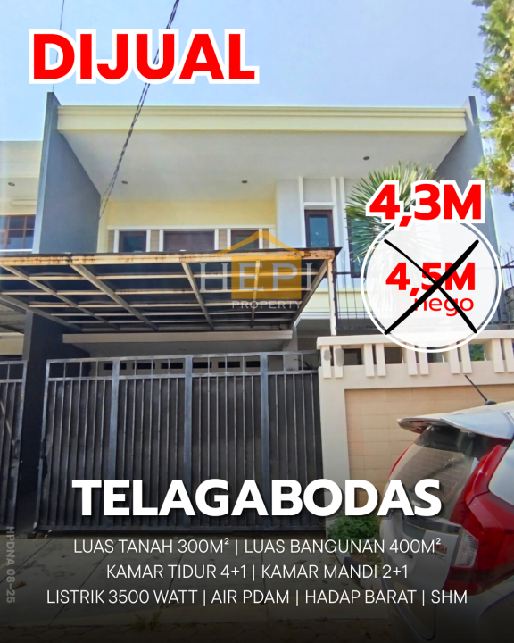 Dijual rumah mewah di kawasan elit Gajah Mungkur, Semarang. Dengan desain modern, LT 300m², LB 400m², terdiri dari 5 KT & 3 KM. Harga premium: 4,3 Miliar. Lingkungan prestisius.