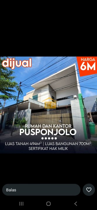 Dijual Rumah + Kantor di Pusponjolo Semarang