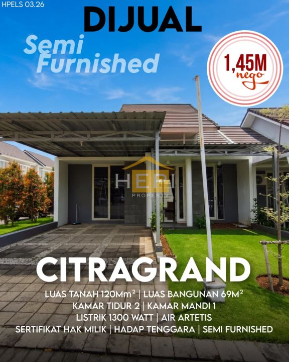 Dijual rumah di Citragrand, Semarang. Hunian modern dengan 2 kamar tidur dan 1 kamar mandi. LT 120m², LB 69m². Harga terjangkau 1,45 Miliar. Lokasi strategis.