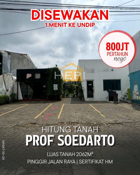 Disewakan tanah prestisius di pusat Semarang, kawasan Banyumanik. Luas 2062m². Tanah incaran. Harga sewa premium 1,64 Triliun/tahun.