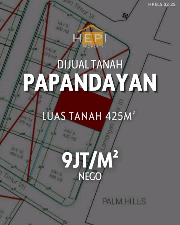 Tanah luxury di lokasi strategis papandayan, Semarang. LT 425m², harga eksklusif 3,82 Miliar. Lokasi premium, dekat pusat bisnis dan perbelanjaan.