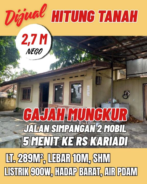 Tanah luxury di lokasi strategis Gajah Mungkur, Semarang. LT 289m², harga eksklusif 2,7 Miliar. Lokasi premium, dekat pusat bisnis dan perbelanjaan.