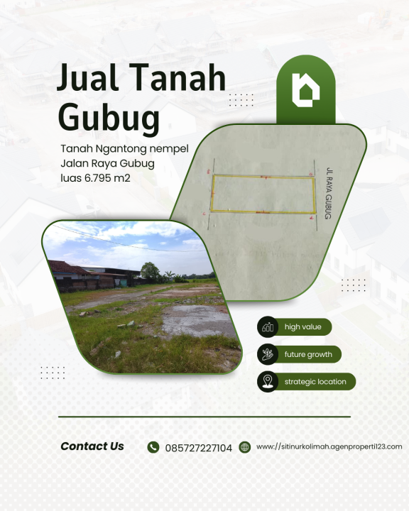 Dijual tanah eksklusif di kawasan elit Gubug, Grobogan. Luas tanah 6795m², harga premium 8,15 Miliar. Cocok untuk hunian mewah atau investasi prestisius.