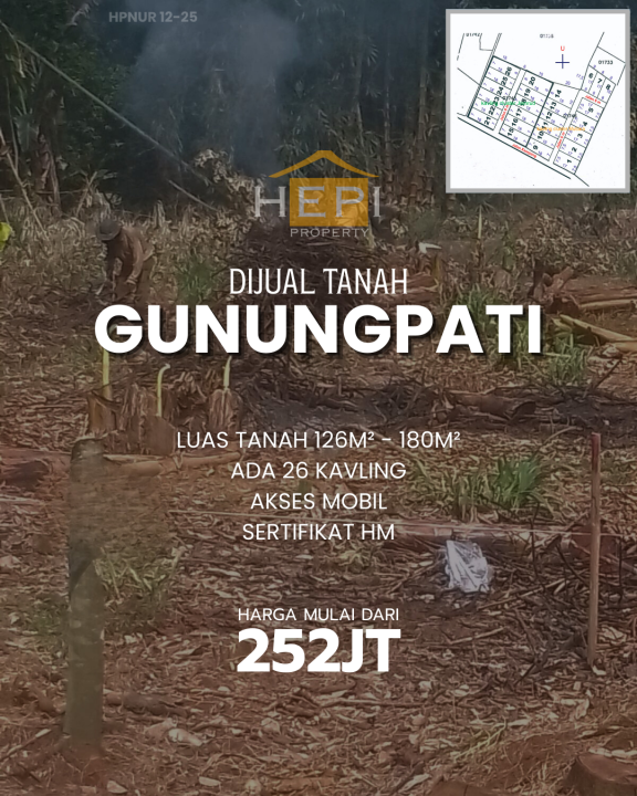 Jual tanah minimalis di Gunung Pati, Semarang, LT 126m², harga murah 252 Juta. Cocok untuk rumah tinggal.