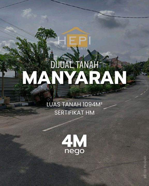 Tanah luxury di lokasi strategis Manyaran, Semarang. LT 1094m², harga eksklusif 4 Miliar. Lokasi premium, dekat pusat bisnis dan perbelanjaan.