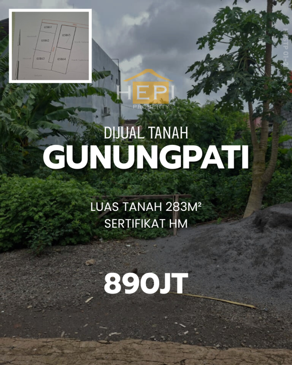 Tanah siap bangun lokasi strategis di Gunung Pati, Semarang. LT 283m², harga terbaik di kelasnya 890 Juta.