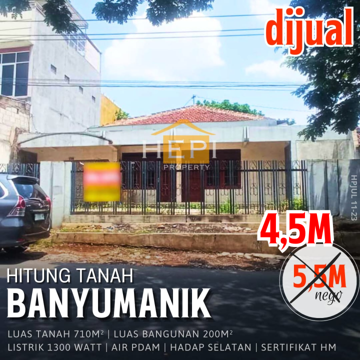 Dijual tanah eksklusif di kawasan elit Banyumanik, Semarang. Luas tanah 710m², harga premium 4,5 Miliar. Cocok untuk hunian mewah atau investasi prestisius.