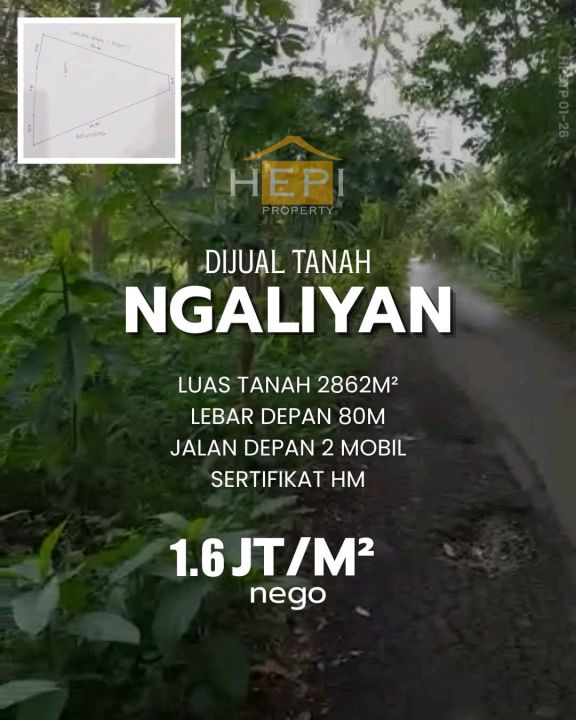 Dijual tanah eksklusif di kawasan elit Ngaliyan, Semarang. Luas tanah 2862m², harga premium 4,57 Miliar. Cocok untuk hunian mewah atau investasi prestisius.