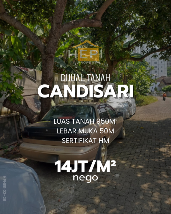 Tanah luxury di lokasi strategis Candisari, Semarang. LT 950m², harga eksklusif 13,3 Miliar. Lokasi premium, dekat pusat bisnis dan perbelanjaan.