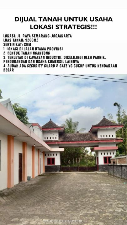 Dijual Tanah untuk Pabrik di Jalan Utama Jogja-Semarang