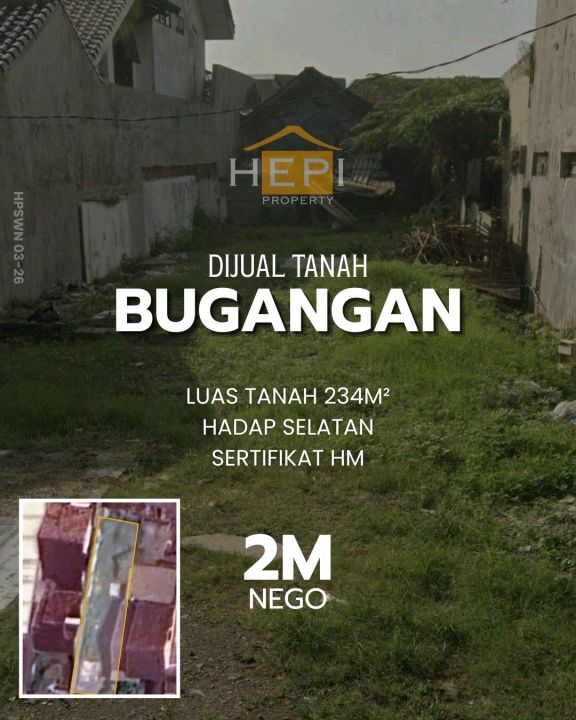Tanah strategis dijual di kawasan Bugangan, Semarang. Luas tanah 234m², ideal untuk rumah tinggal atau investasi. Harga kompetitif 2 Miliar.