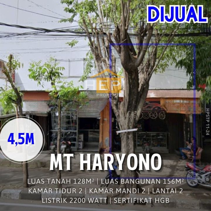 Ruko bangunan 2 lantai. Di jalan MT Haryono. Lokasi pertokoan ideal untuk usaha dan bisnis.