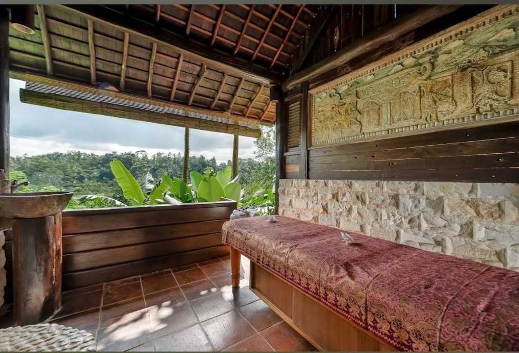 Ruang pijat terbuka dengan pemandangan alam.